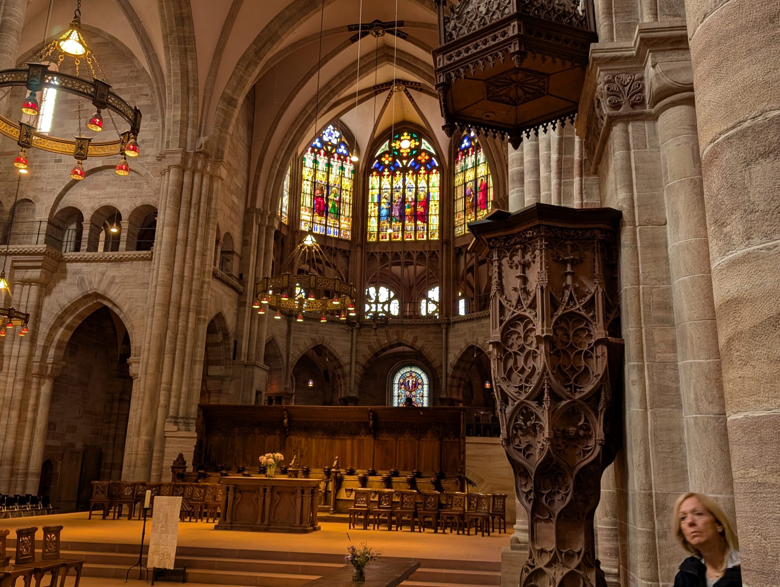 We once again had a 9:00 am train and had to head out by 8:15 to get to the station on time and grab some hot drinks and pastries on the way. We made the train just fine. It was a two-hour ride and were scattered around the train. It was a nice ride through the German countryside. Basel is a very old city and dates back to the Romans coming through in the BC era. It has gone through many different types of government and control through its long history. The city did not suffer much during WW2. It was mistakenly bombed by American bombers on March 4, 1945, when the bombers thought it was a German city. It does sit right on the boarder. Amazingly, no one was killed in the bombing. The city is known for its many bridges across the Rhine River that flows through it. It has some very old sections dating back hundreds of years and others that are very modern.