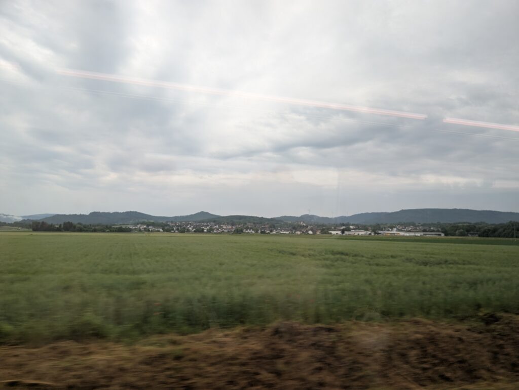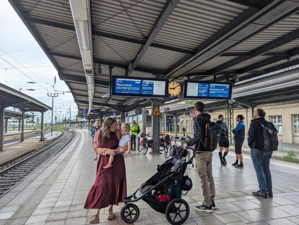 We were early for our train, but it was pouring so we did not mind. Then we discovered that our train back to Karlsruhe was cancelled. Mark and Abigail were able to find out that we would need to only wait another hour before there would be another train we could take. We got Jamie asleep, and we all got something to eat. We were all very wearier after all the traveling we had been doing. The weather had so changed from the very hot and dry when we first arrived in Germany 5 days earlier to the breezy, rainy, and cool weather we now were having.