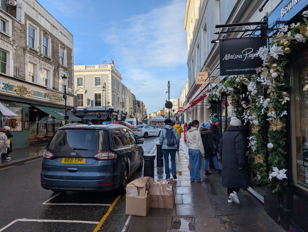 Then we headed out and we got ourselves to the Notting Hill area and worked our way to the Portobello Road Marget. It started really raining as we headed out to the tube and as we walked to get lunch. After lunch we saw the most amazing sight, the SUN!!!!! We had literally not seen the sun since we landed through the clouds into Heathrow. We really were amazed, and it was so BRIGHT!!!