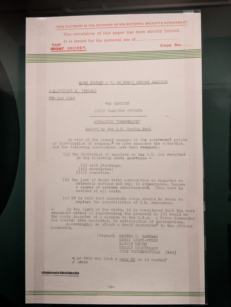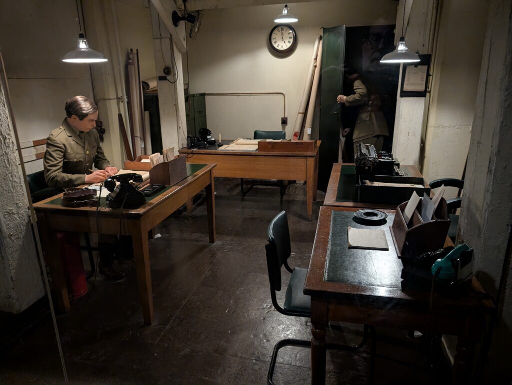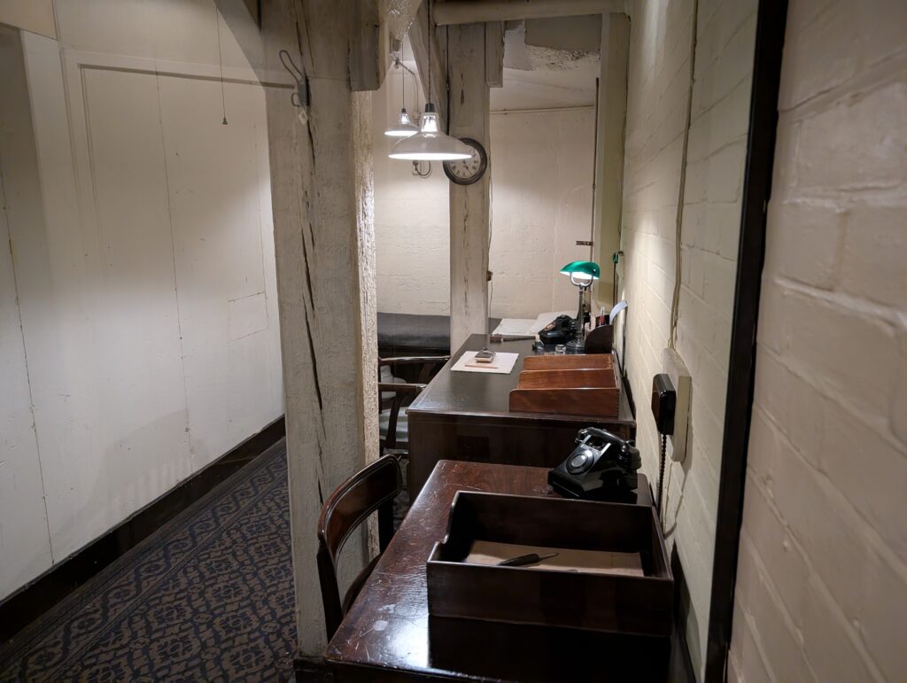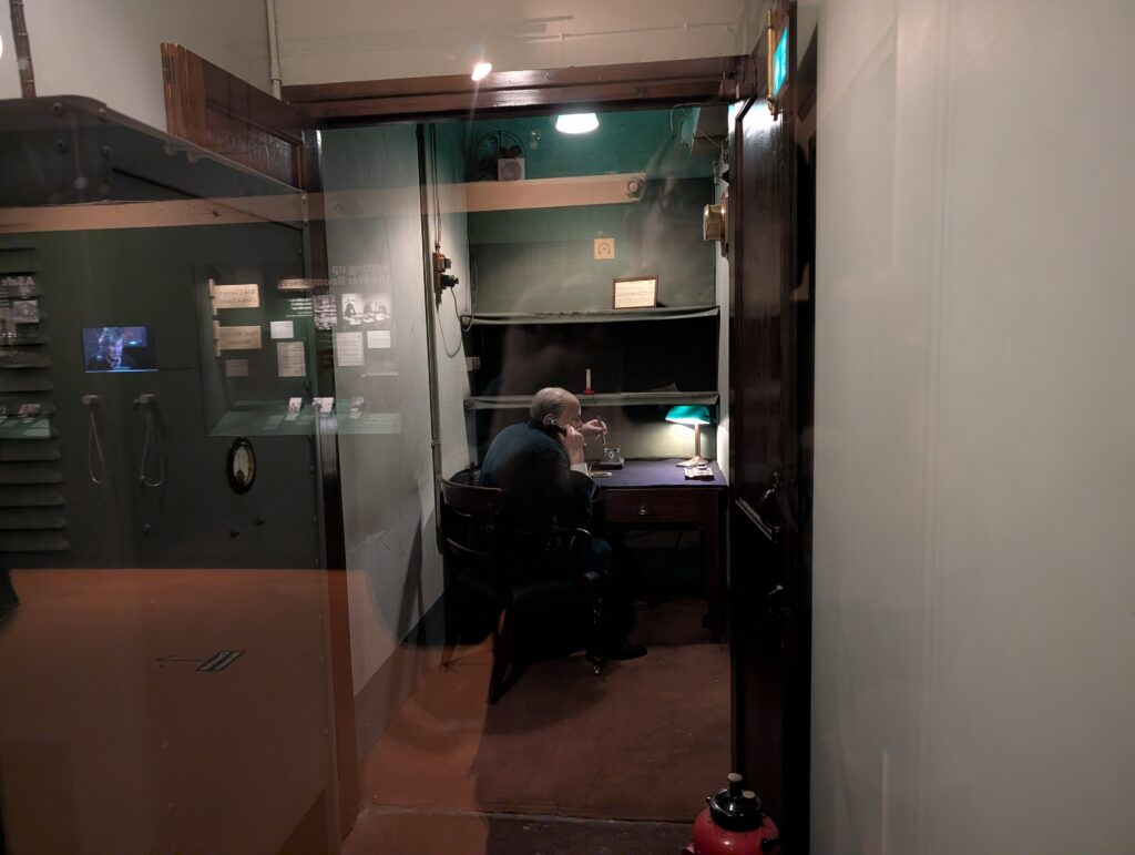 Both Becky and I had no idea how many people worked underground for the six years of the WWII. The rooms were actually prepared before the declaration of war and then were expanded significantly during the war. We also did not realize that many people would live in the rooms for days and weeks at a time. The war rooms went operational 1 week before the first bombs dropped on London. The bombings continued for 57 days straight, but the rooms continued to operate as the secret hub of military operations till V-J day in 1945.