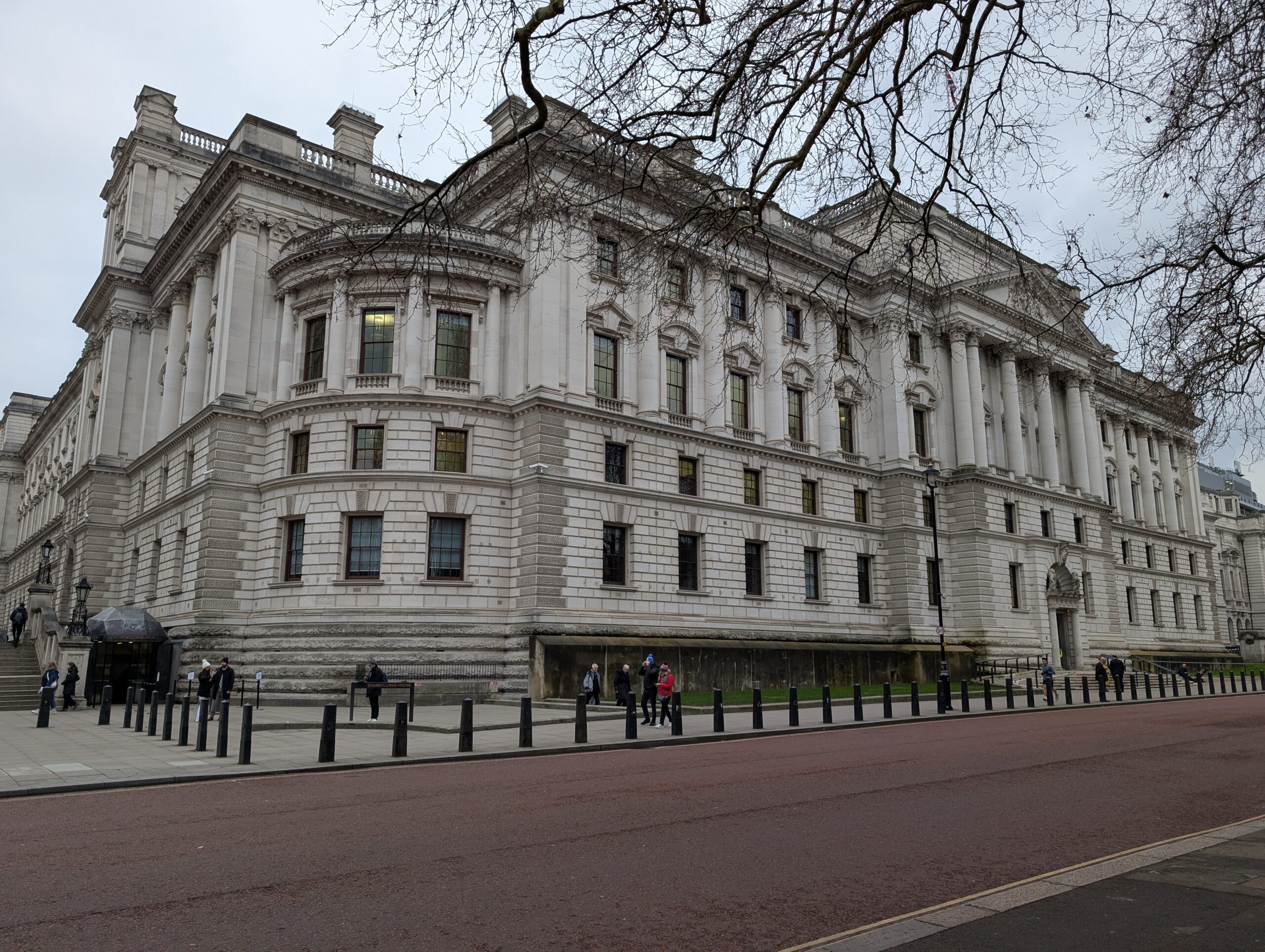 In the pictures it shows just how tight the space was. At the height of operations there were over 500 people who lived and worked in the war rooms. Churchill did not live underground, but he would spend time down there, have meetings, some meals, and only a few times did he actually sleep there. Approximately a half dozen German bombs fell and exploded within half a block of the public works building that was the building that was above ground over the war rooms. (The now Treasury Building is shown as the building at the top of this blog post. )