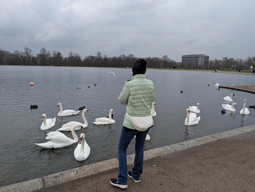 From Buckingham Palace we decided to take our time and just walk through Hyde and Kensington Gardens parks. We of course stopped along the way to have coffee/tea break, but it was a great day.