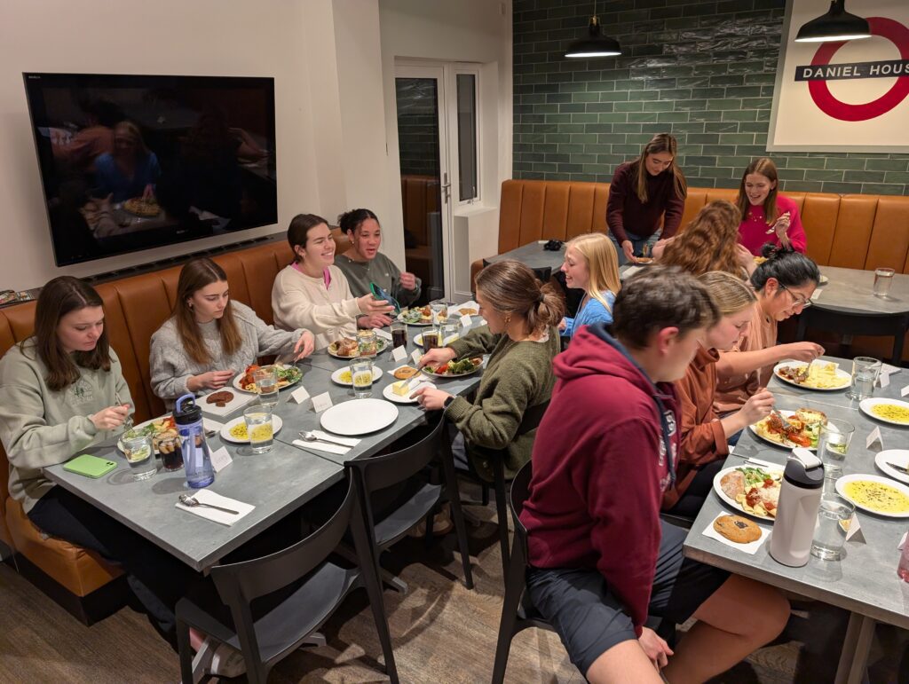 The evening ended with the students on the 4th floor of the building cooking dinner for everyone else at the Daniel House. The room was filled with great food and fellowship. We are so enjoying getting to know and fellowship with these students.