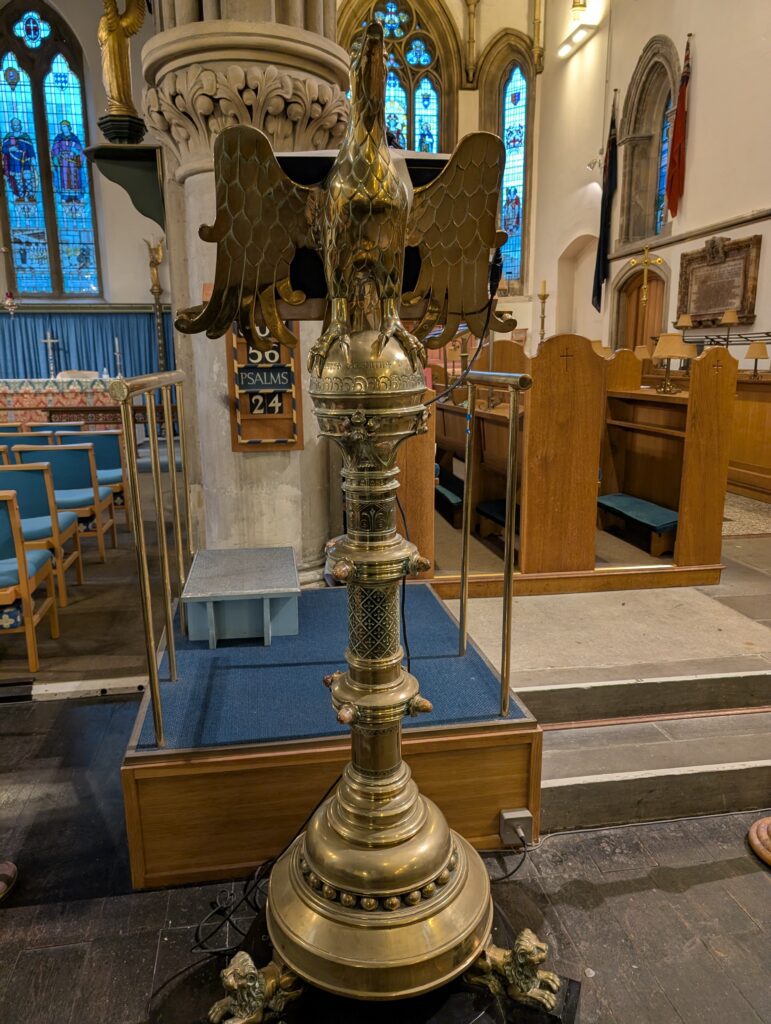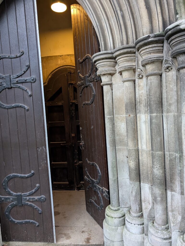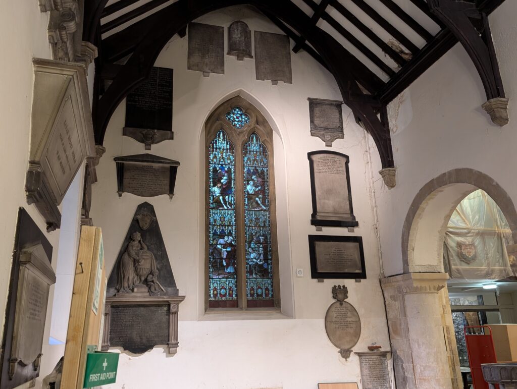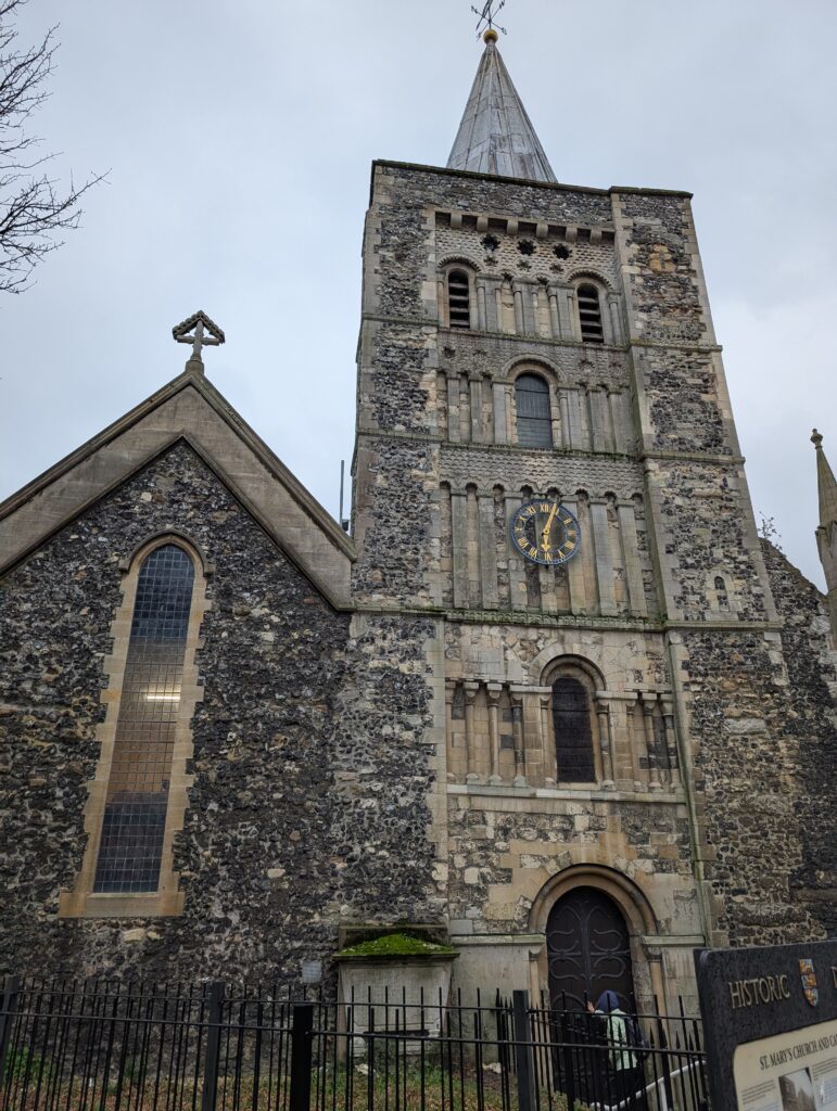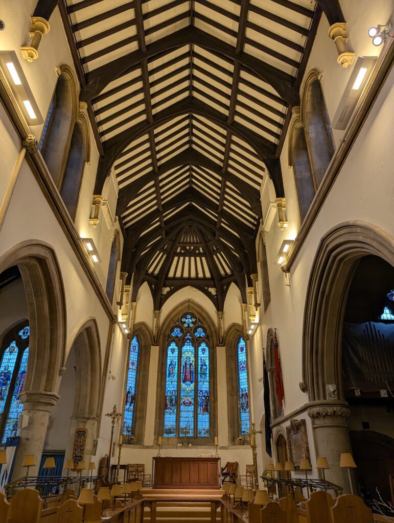 He dropped us off at the Eight Bells pub. It was dry and warm, and we ate a very slow lunch. Afterwards we walked right across the street to Fred’s first recommendation which was St. Mary’s Church, and over 400-year-old church.