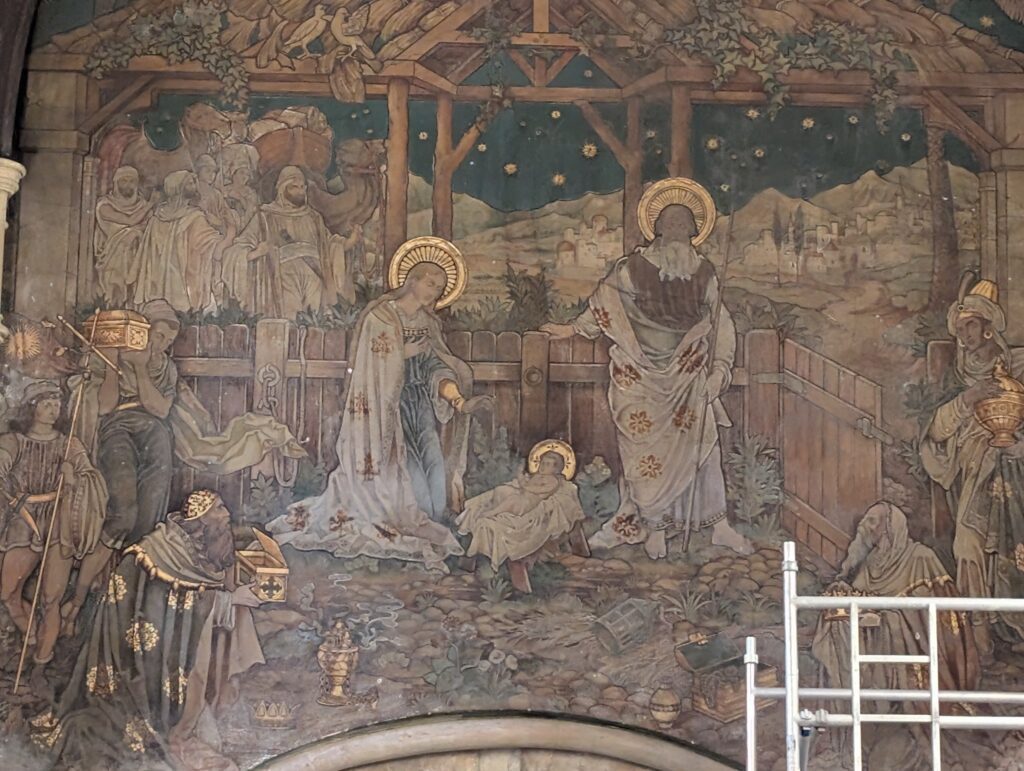 We wanted to go in, but at first could not find a door open. Becky finally found a small side door open, so we went in. Part of the sanctuary was being remodeled, but we walked around and read plaques and looked at the gorgeous architecture and just the overall history and beauty of the place. We were the only ones in the church. That is when a man came out, surprised to see us, he finally told us we were not to be in there and had to leave. Ooops!! We slowly moved out. We tried to see another place called The Roman Painted House, that houses some Roman ruins that were discovered in the town. Unfortunately, it was closed.