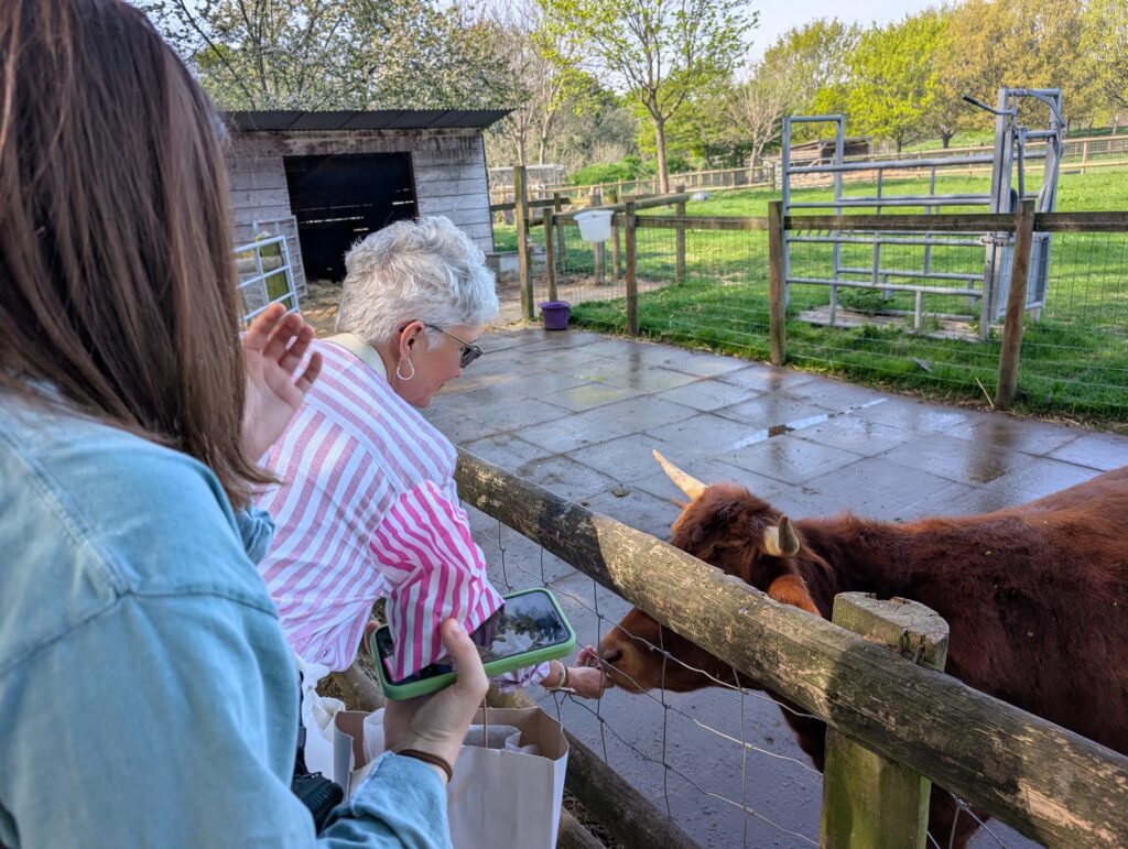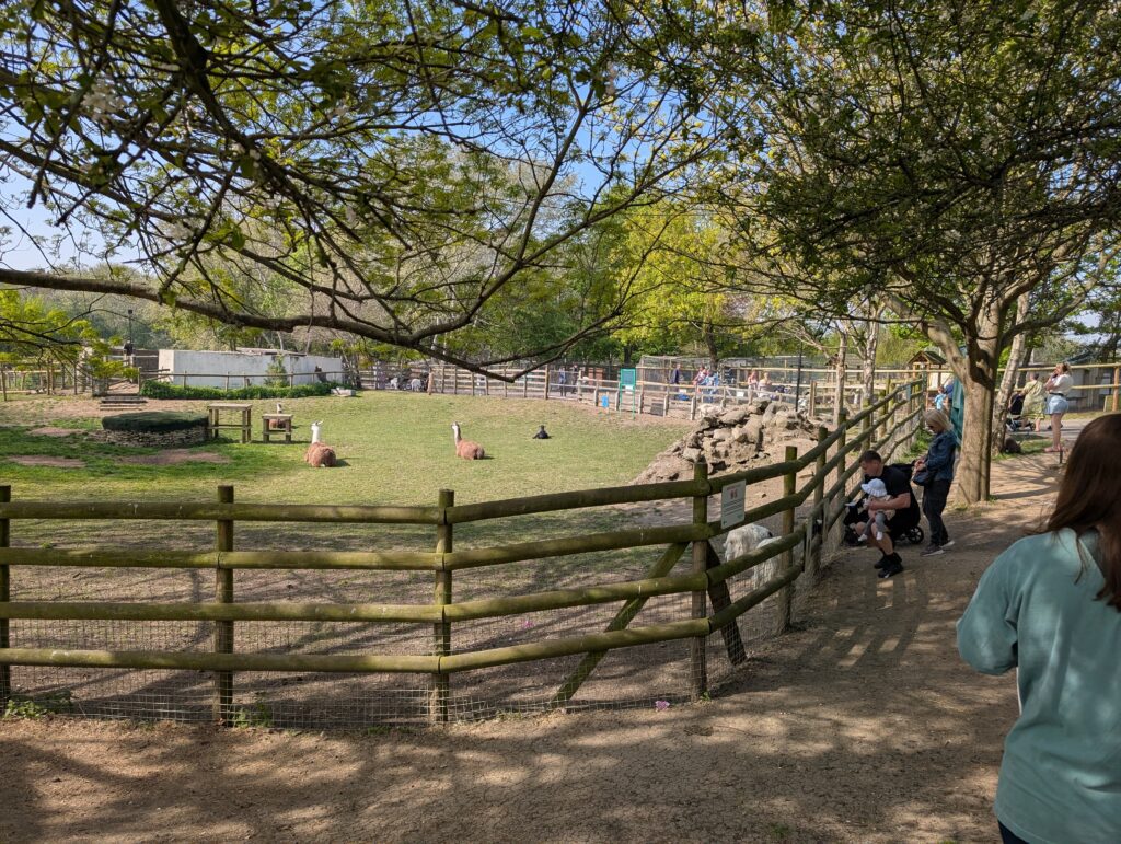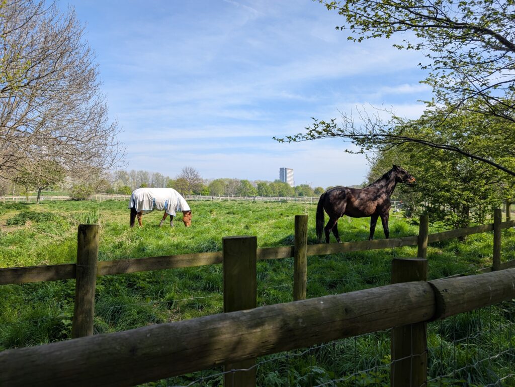 The next day we headed off to the Mudchute Park and Farm. Becky had visited here at another time, but we were going to be spending the day with Olivia, one of the students here. We headed out on the train. It was an absolutely perfect spring day. The temperature rose to 70 degrees, and the sun was shining full. The farm not big at all but is run by the city and is open to everyone. They have lambs, goats, horses, pigs, all sorts of birds. Many of the animals have low fences near them or at least fencing that you can reach in and pet the animals. They also sell feed you can give to many of the animals.