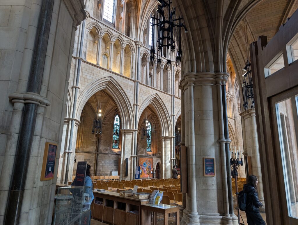 I then walked over to Southwark Cathedral. It was Southwark Priory for hundreds of years and then after the dissolution of the monasteries it became a church. It was not till 1905 that it became a Cathedral. The area was hit with over one thousand bombs during the blitz in WWII, but the cathedral only took minor damage during that whole time. As is with so many cathedrals in this country it was gorgeous. Small in comparison to others, but very nice in its own way. It is much more of an active church then other cathedrals we have been in.