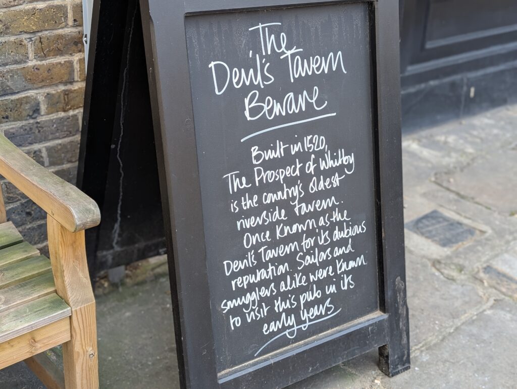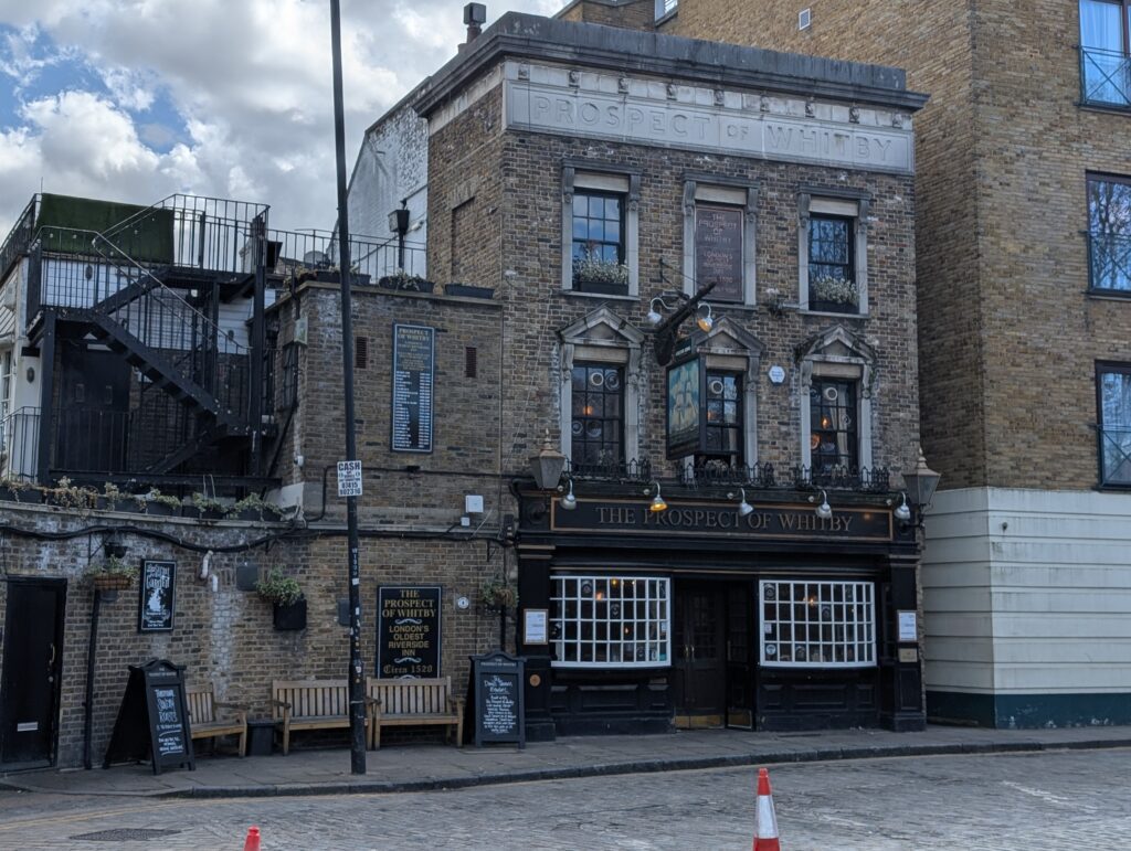 Becky met up with me and we then took off to find a pub she had been very interested in finding, the Prospect of Whiby. It is sitting right on the Thames River and has been named The Pelican and Devil’s Tavern. It was originally built around 1520, but has been rebuilt many times. One thing it was noted for was the place that pirates were hung. It was also a place known for sailors, smugglers and others from the rougher side of life. It was a wonderful pub and really off the main roads to anywhere. We enjoyed our time there.