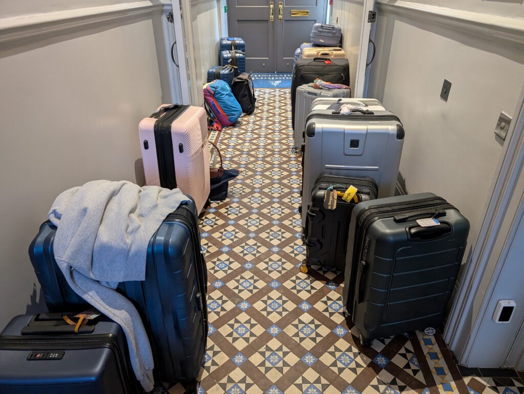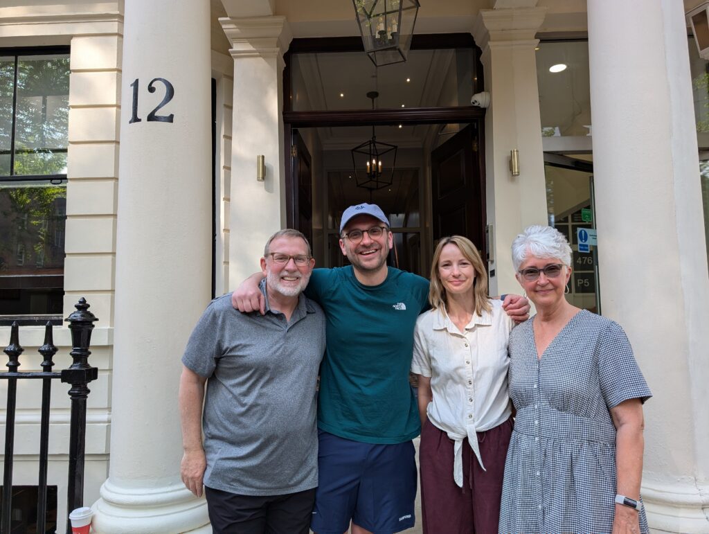We then got back to the DH, hugged Tom and Jo and then into an Uber for the ride to London Kings Cross station. We then boarded a train to the Royston station where Mark’s stepfather, Perry, met us and brought us to his home. Perry and Mark’s mother Fiona were the perfect hosts after the experiences of this day. They let us dump and ramble on about what we were leaving, and we all enjoyed a gorgeous evening at their country home. We watched a marvelous sunset over the farmers’ fields. Such a far cry from the hustle and bustle of London. Now on to the second part of our travels this spring.