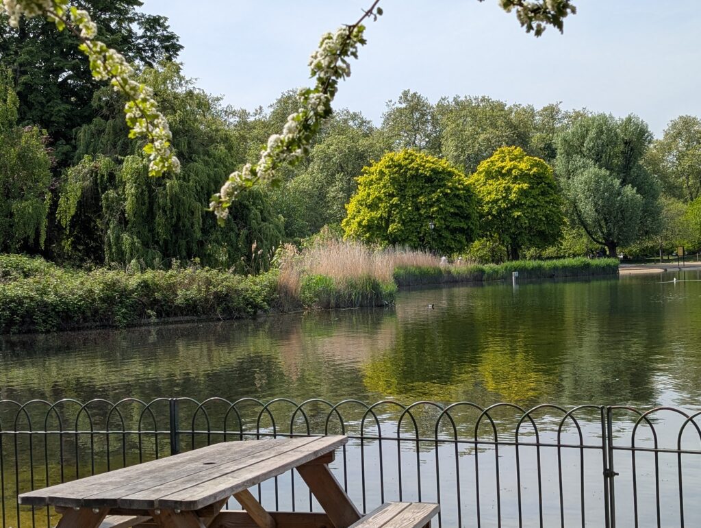Finally, the bags were loaded, the students were loaded and the bus pulled away. The students who were staying in London or off to other places slowly made their way off. We would be taking a train out of London at 3:30 and so Becky and I headed to Kensington Gardens and Hyde Park. It was a beautiful 70-degree day with full sunshine. We stopped at a couple of the cafes in the parks and relaxed and enjoyed the warmth and memories. We had first walked these areas when it was bare and cold and damp, now it was full of life and energy. So different.