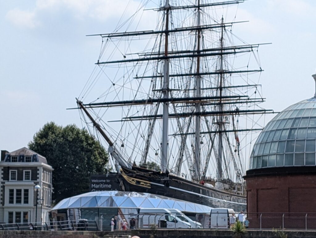 This trip to the Royal Observatory and Greenwich was so wonderful. Becky and I plan to go back to this area since we really did not even begin to touch all the history and beauty. The Maritime Museum alone is worth a day trip and we did not get to go to that at all. This is actually the second time we have been in the area. Last summer we came with Abigial and Jamie, and we also visited the Observatory, but we also visited the Cutty Sark which is an 1869 clipper ship that is dry docked and people can visit it and see how a shipping boat looked back then. The ship moved tea and eventually wool across many seas.
