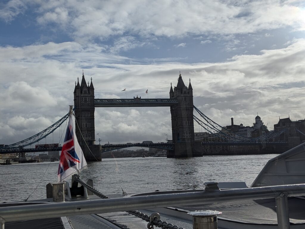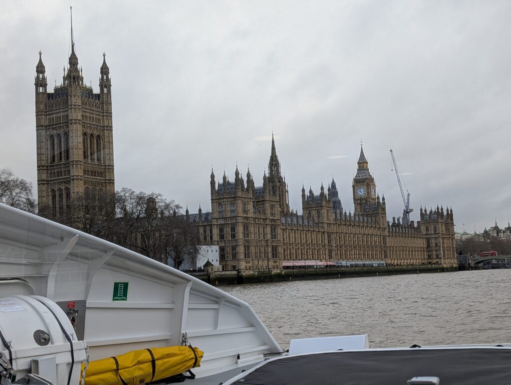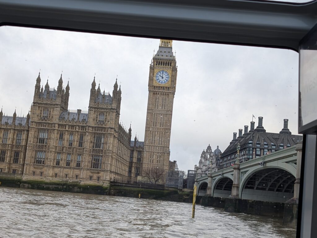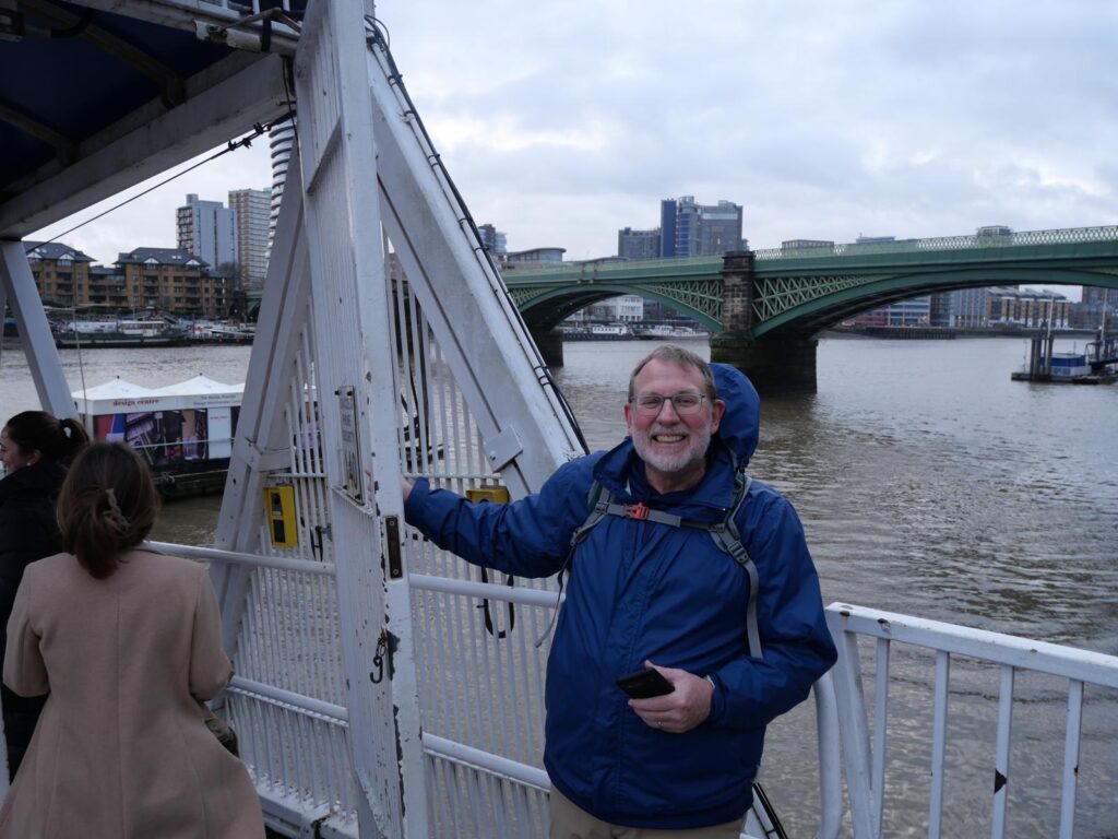 The first trip for the class I am teaching, Introduction to Computer Science, was off to the Royal Observatory in Greenwich. To make the trip out there more enjoyable than just riding a tube train, we rode an Uber boat up the Thames. We headed out before 9am and had to ride a couple of short trains to the Chelsea Harbor Pier. The pier looked locked and had several messages posted on it and a phone number. I started trying to call one of the numbers when a woman walked by and told the students that if you just pull the gate, it is unlocked and is open. Sure, enough it was.