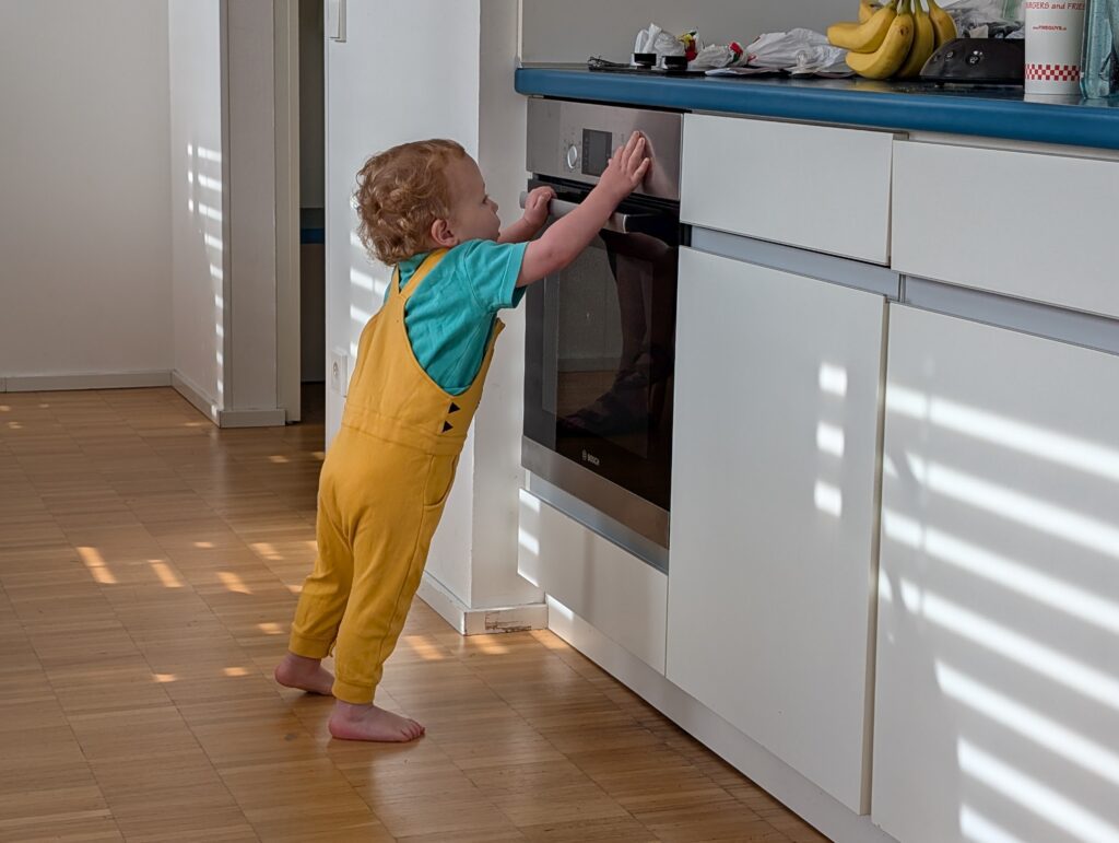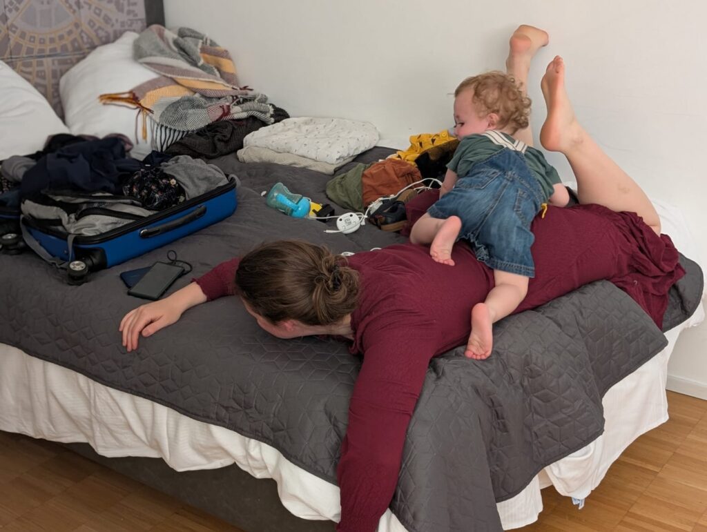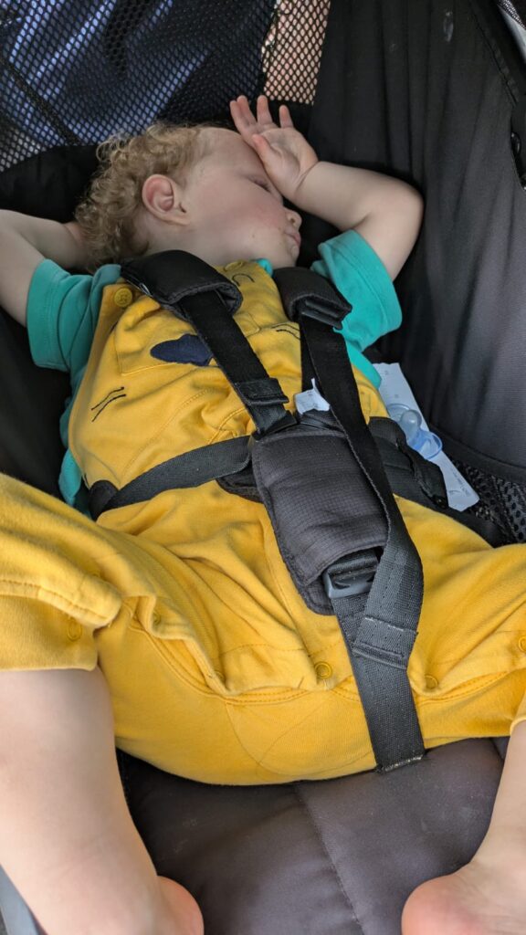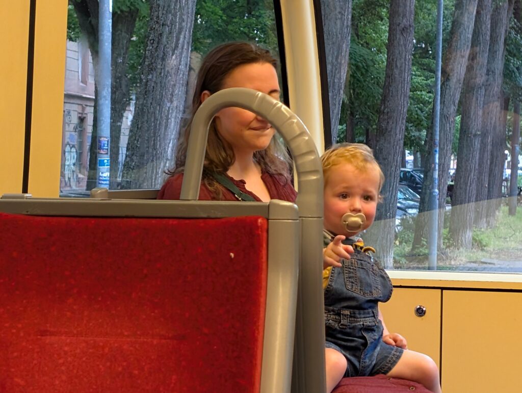 We rode the tram to the mall. Neither Becky, Abigail, nor I speak any German, so this little trip was a bit of fun. The CityMapper app is truly a great thing to have. When we got off the tram at the mall we first walked through the IKEA store that was right at the tram stop. Jamie fell asleep as we did. We then walked over to the actual mall and just made it inside before the skies opened up and down poured. It rained for over an hour. We got the cot and had some lunch and as we walked out the rain stopped. We made our way back to the hotel and Jamie loved his new cot.
