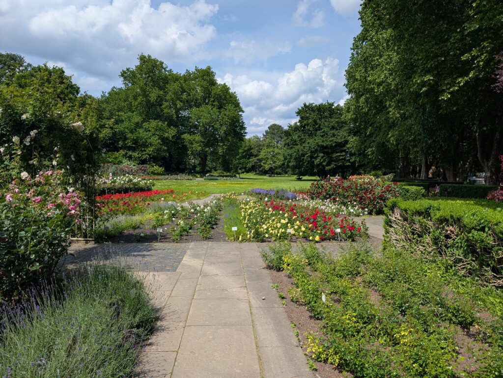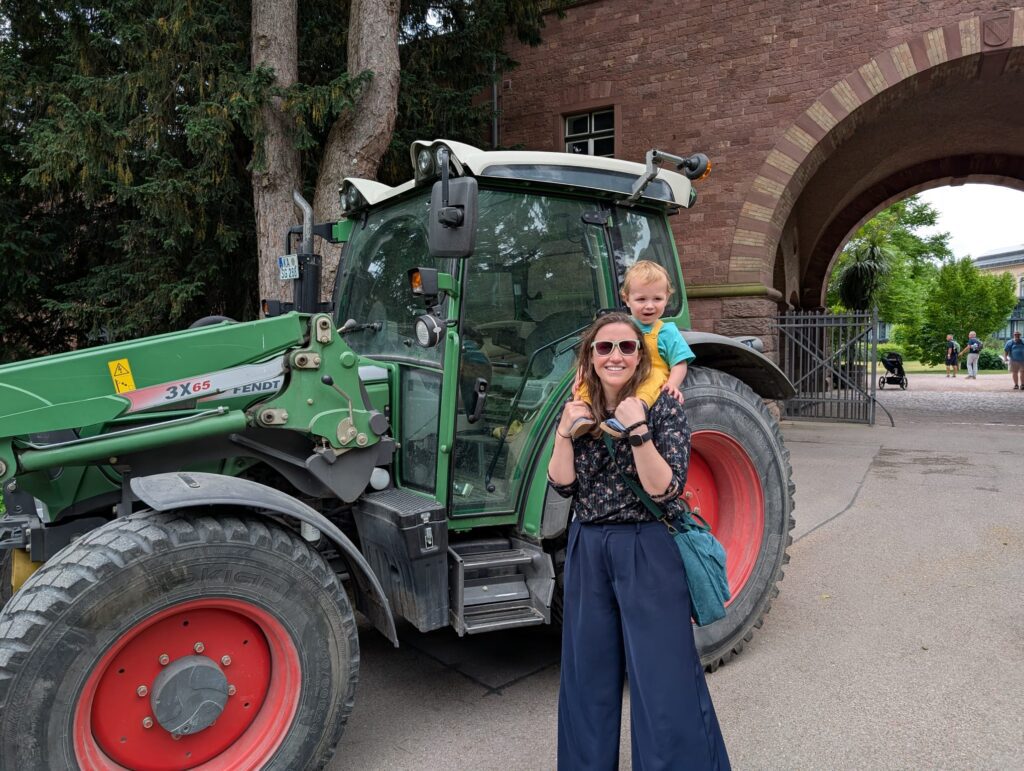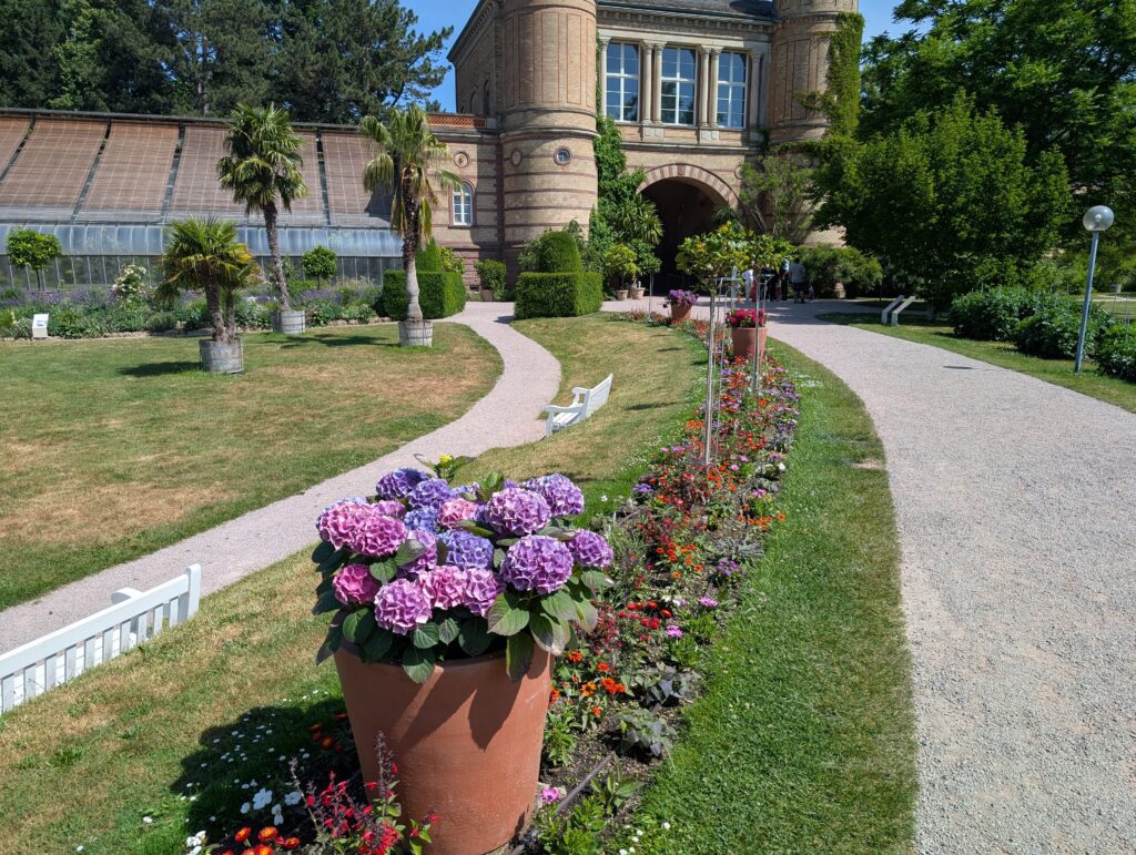 The first few days of our travels were spent in Karlsruhe Germany where Mark was to have his first race. We were all a bit bleary eyed to start the first day as it was a very late night. Abigail did not sleep much with trying to sleep in the same bed with a 20-month-old. I got out right away to try and find some coffee and some food for everyone to eat. Many coffee shops did not open till later and finally had to settle on a small grocery store. Abigail and Jamie met up with Mark and headed to the Botanical Gardens. Becky and I met up later. It was already hot and eventually got up into the 80’s. Mark had not been feeling well for a couple days and was not doing well this day either. He headed back to his hotel to rest for his race. Jamie took a nap in the stroller at the park and then we headed into town to grab some lunch. We found a nice, shaded beer garden at a restaurant and relaxed there for a while.