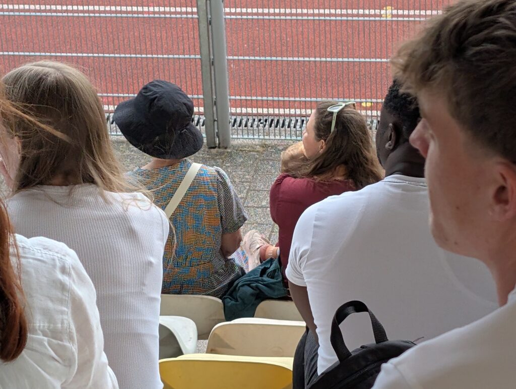After a quick Jamie nap, we headed to the Carl-Kaufman Stadium to see Mark run. He had been at the track long before we got there. Just as we arrived a storm blew through, not with any real rain, just very gusty wind. The heavy clouds and wind cooled things way down. Sadly, Mark was not able to complete the race. He started, but being ill for a couple days just took too much out of him and he could not do it. It is always enjoyable to attend these meets and see all the athletes and this particular one was a great experience due to being in another country.