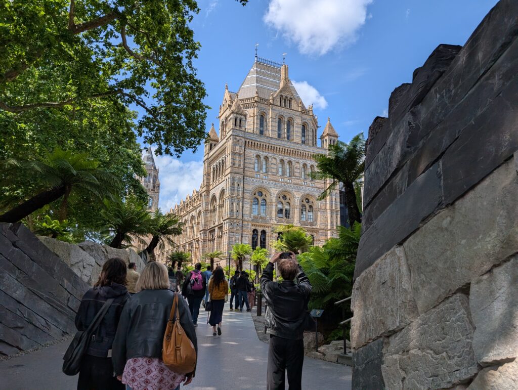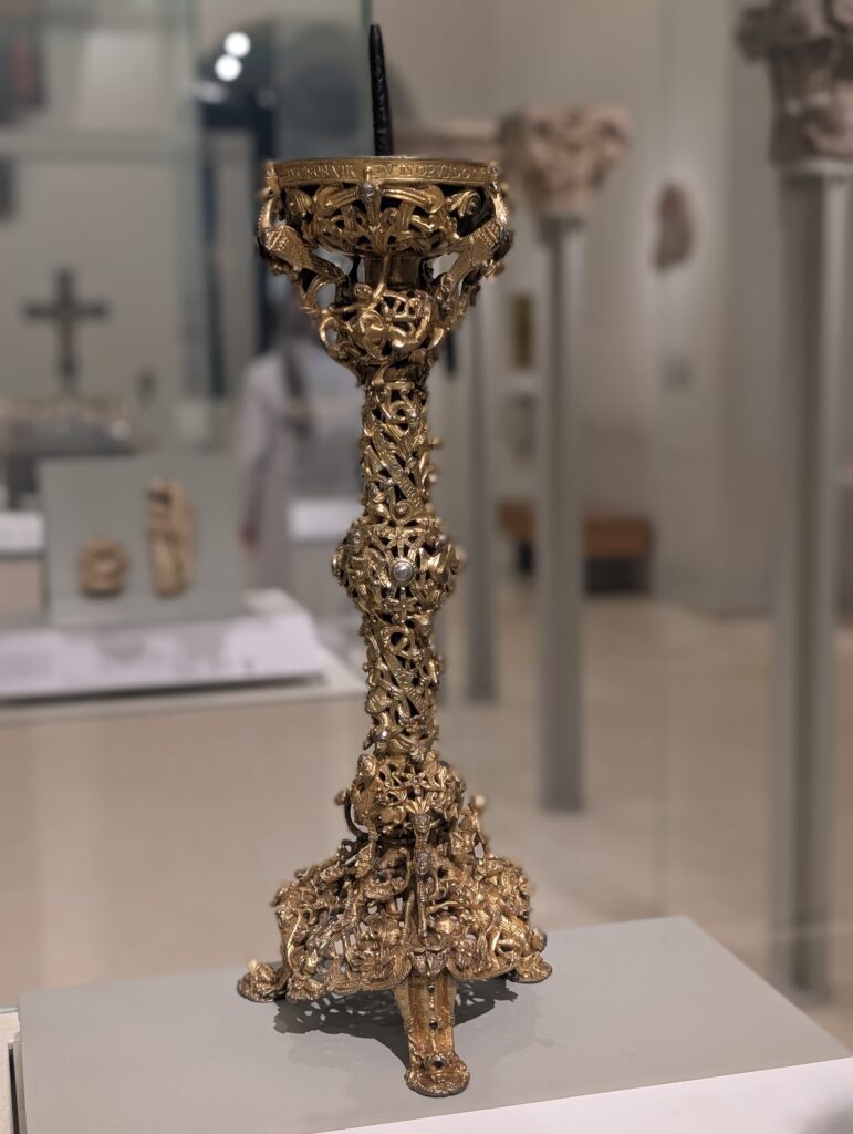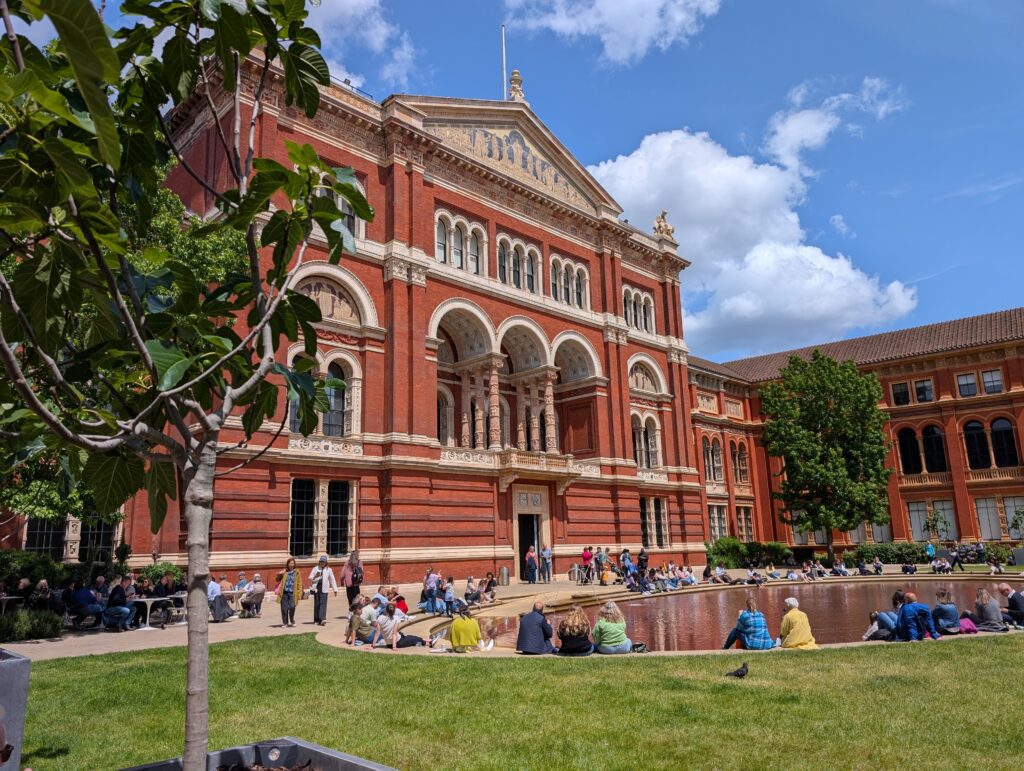 Next, we got on the tube and rode down the Circle Line to South Kensington station and walked the underground path to the V&A Museum. Becky has been reading a book about the building and history and one of the key items talked about was something called the Gloucester Candlestick. We found it after a bit of searching. We also got to see the main courtyard open and with the tree’s all leafed out. The first time we saw it was back in January, and it was not even open. We even saw the cafeterias that Becky had read about.