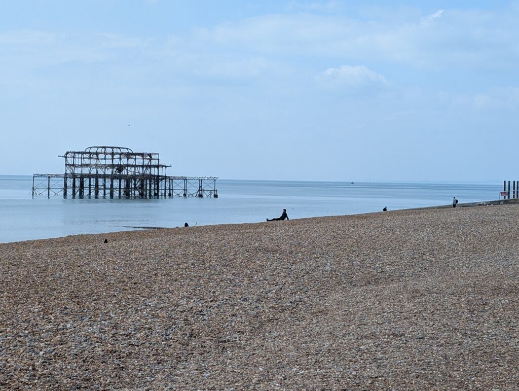 We had a nice lunch at a little place right on the beach and enjoyed the views. We saw a gorgeous sailboat pass by. We then walked up to the Brighton Pier. The pier is clearly where they crowds will be, come summer. We grabbed an ice cream and walked along the pier. We did not ride any of the amusement rides on the pier but just enjoyed the walk. We both had to admit that Brighton was much bigger than we thought. There was an old pier out in the water, and that pier was built in the 1860’s and had its height of usage in 1919, with over 2 million people visiting. WWII brought much of that to an end, and along with several bad storms the pier eventually stopped being used and then fell apart and over the past 20 years began to fall into the channel. There have been many projects to try and restore it, but none have gotten any further then ideas and now it has been declared unsalvageable and just sits out in the water as a memory.