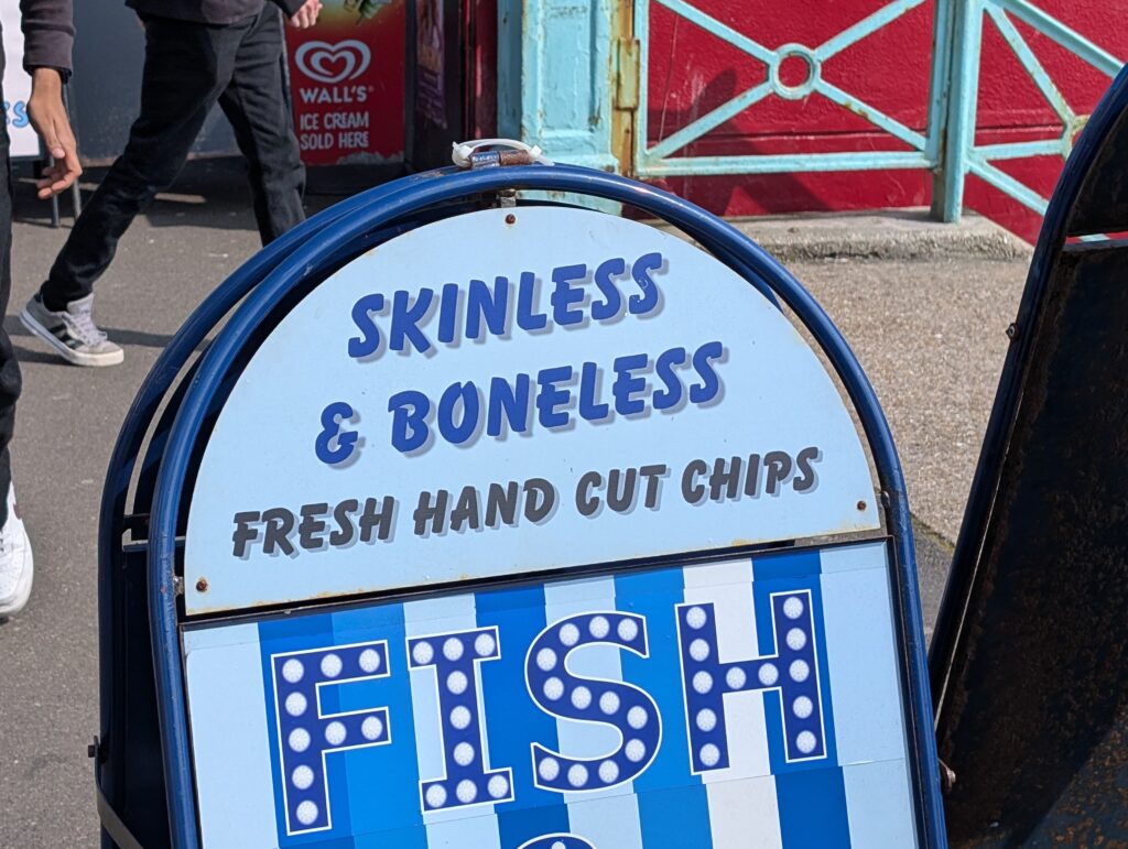 For those who have never been to the UK, the beaches here are not the nice white sand beaches of the Gulf Coast but instead are stone beaches. I did become a bit concerned when I say a message scribbled into the beach for Becky. She assured me that it was not for her, but I am going to be keeping an eye out for Callum. I also found it curious that they have skinless & boneless chips here. Again, for those who do not know, chips are what are called French fries in the US.
