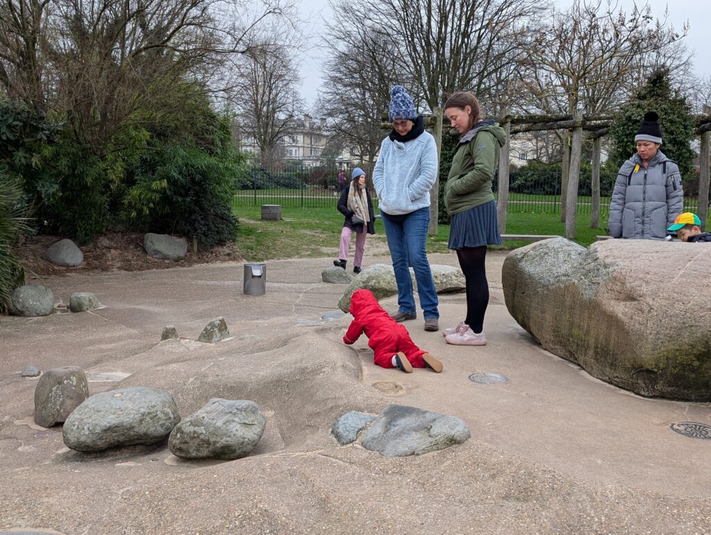 Sunday was a very low-key day. Even Jamie slept in a bit. Then the four of us went to the local Gail’s coffee shop and got something to eat and drink. We then took a walk over to Hyde Park and played in the Lady Diana Garden. Very nice setup for people with young children that you have to be buzzed into to protect anyone from being snatched. We slowly played around on the equipment then made our way back to the Daniel House.