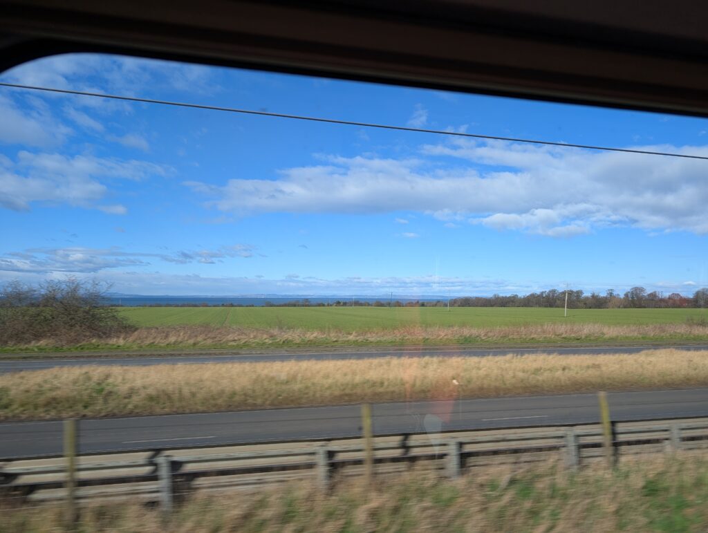 The train ride to Edinburgh was gorgeous. Sheep, fields, streams and eventually the North Sea came into sight. Our train ran up the east coast of the country and it was a wonderful 2.5-hour train trip. We arrived mid-afternoon and walked over to our rental. It is in an old brewery building and again was very, very nice. Two bedrooms and two baths and right off the Royal Mile. Becky was dealing with sinus issues all day and when we got to the flat all she wanted to do was sit. I on the other hand decided to go for a walk.