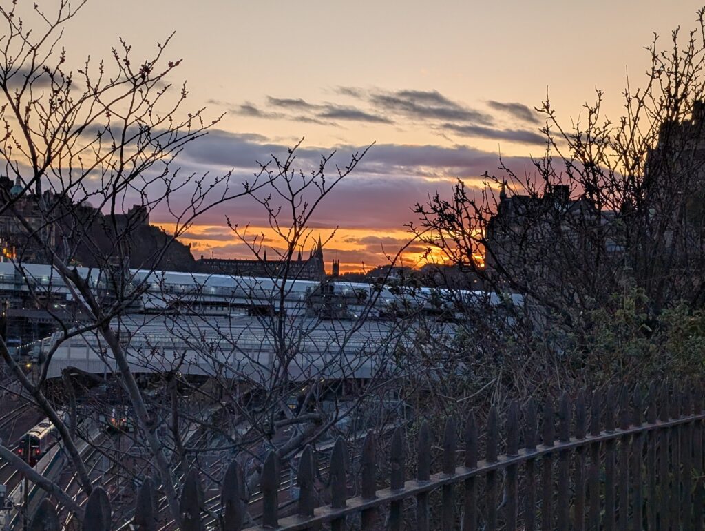 We each made our way back to the flat and were resting up from our day’s adventures when Becky showed me a video Abigail sent her of a scene from the play “The Importance of Being Ernest”. The show was done by the National Theatre company, and one performance was filmed late in 2024 and is now a National Theatre Live show. Turned out there was a showing that night in Edinburgh. We went. We should not have walked to the theatre as we were guided up a very high hill called Calton Hill. The film was so much fun, and we are so glad we did it last second. By the time we got back to the flat our step count was each over 20,000 steps for the day. We very much packed it in for the day.