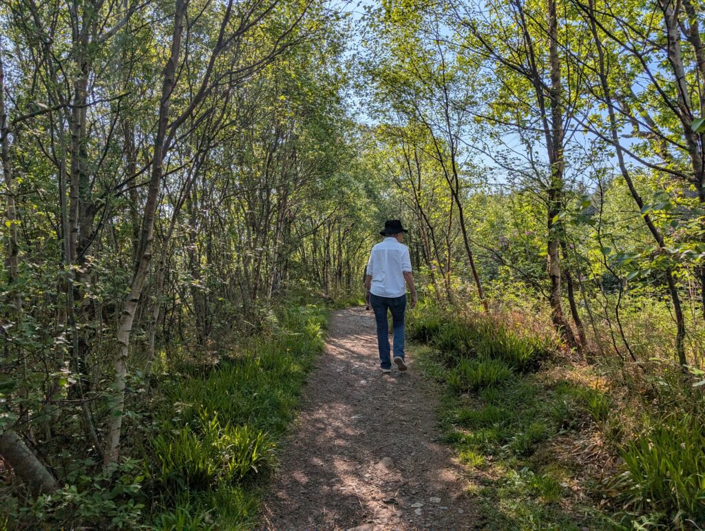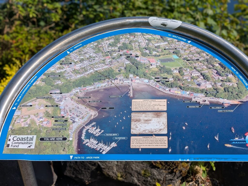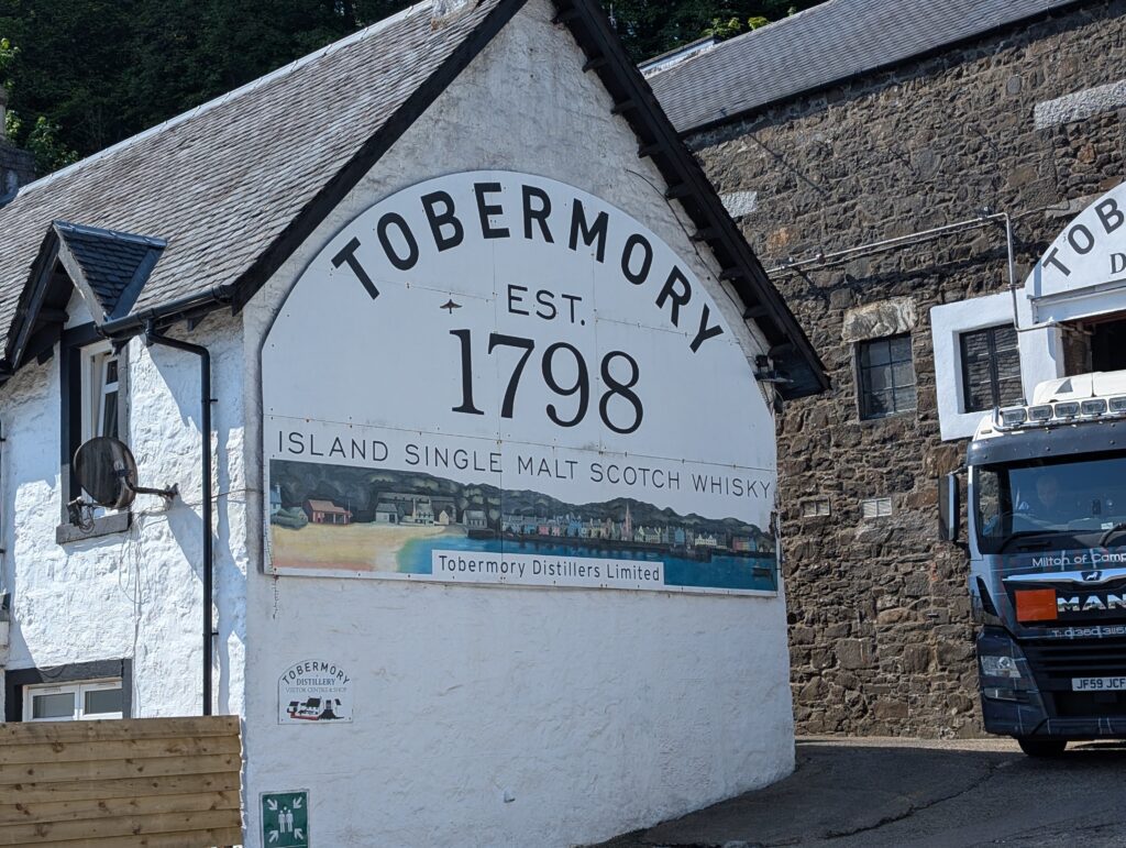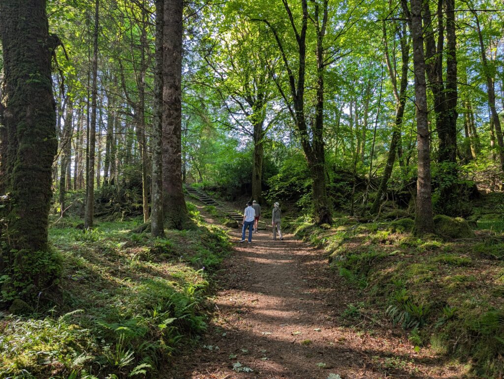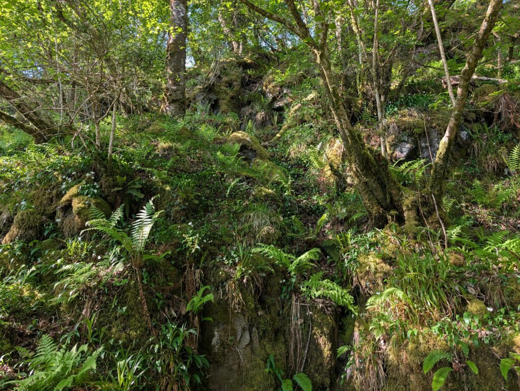 The next morning, we had breakfast and then took a suggested hike along the bay through some woods and to a small waterfall that ran into the bay. There were many different types of boats in the bay from little dinghies to a full cruise ship. After our hike we checked out and loaded up to drive through the Isle of Mull and take a couple more ferries and get to Iona.