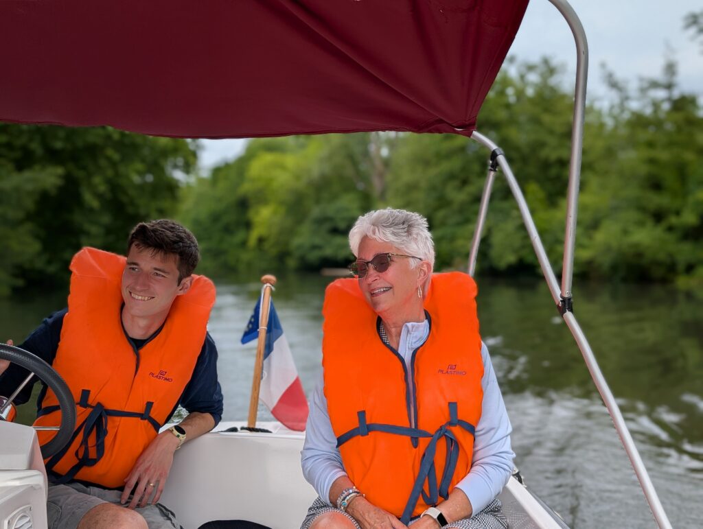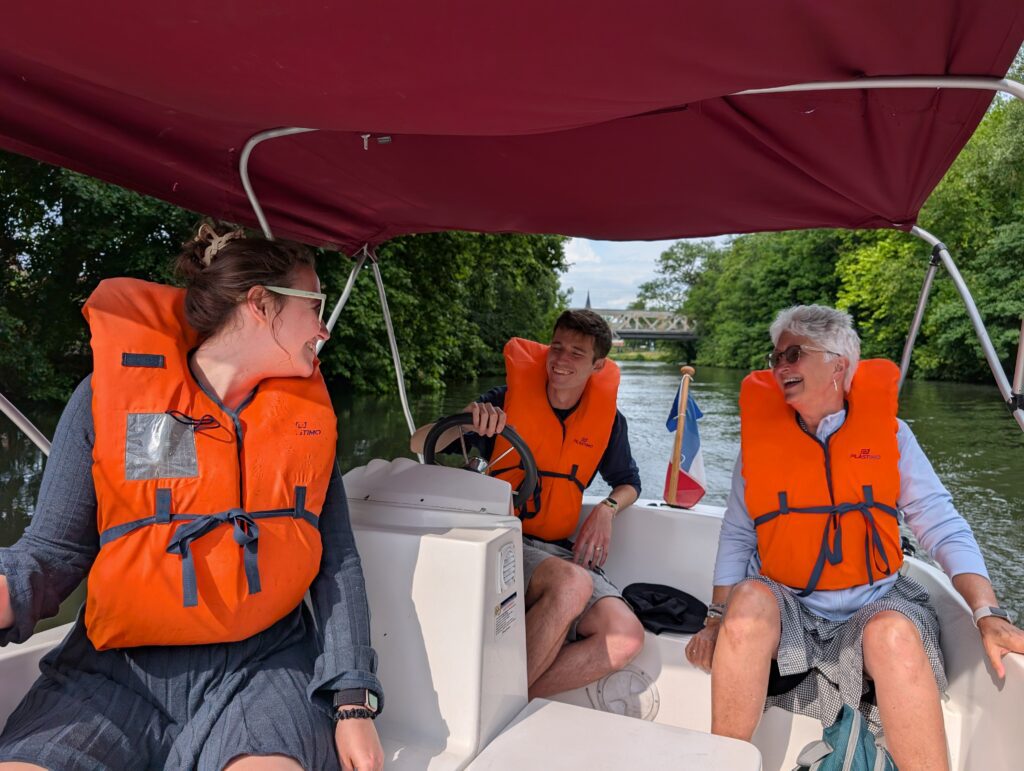 We wanted to take a boat tour, but the only one we could find tickets for was going to be at 5:00 at that was too late. Mark had earlier seen little boats you could rent and drive yourselves. We went over there and soon we were off on our own with captain Mark at the helm. Mark really enjoyed driving the boat. Jamie had a real issue with putting on a life preserver and Abigail quickly came up with a little “Boat Coat” rhyme that we all joined in on and soon he found it fun. We had the boat for over an hour and had a great time. Even when Jamie flipped the little switch the nice woman said we should not touch because it shuts off the boat. We figured out how to turn it back on before Abigail could call the emergency number. The ride was so much fun, and I don’t think I have seen Mark as happy as he was driving that little boat.