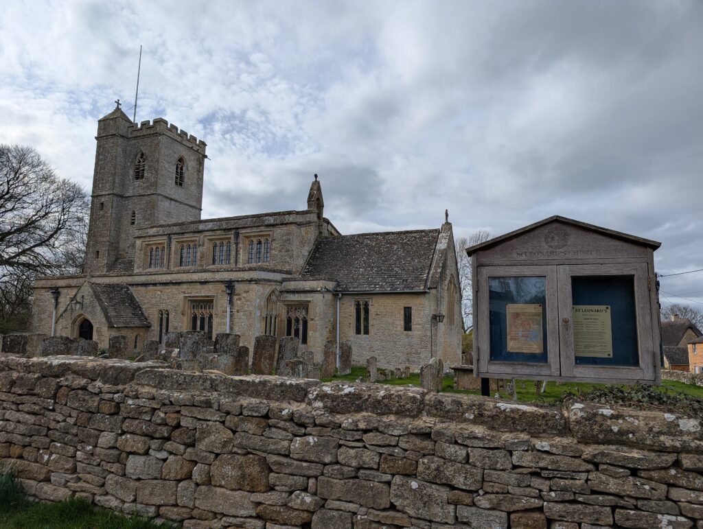 Trains only run through this area about every hour, but we just happened to arrive about 10 minutes before the next train we needed. We boarded the train and rode for about 10-minute train ride to the station of Kingham. We got off there and the article we were following said we should follow the 3.5-mile Kingham Station Short Circular Walk. He had never heard of it, but he pulled a map up on his phone and told us where to go to start walking it. I found the map and off we went We walked in the direction of small town of Bedlington, population 506. We walked along the road for bit and then crossed on to a walking path, followed along some fields, along the Evenlode River and eventually we found ourselves on the streets of the town. Again, every building, fence, etc. was made out of the same stones in Charlbury. It was so quiet and peaceful every place we went. Again, very narrow roads and sidewalks, but only a car passed by every once in a while. There were some families playing out on the village green. We then came across the old church building in the town. St. Leonard’s. There was a choir inside that was rehearsing so we did not go in but really wanted to. Not many records about the town are around, but it seems to date the Roman era, it was recorded in the Doomsday book in 1086 and has had a history from then on. It was a walk we really needed.