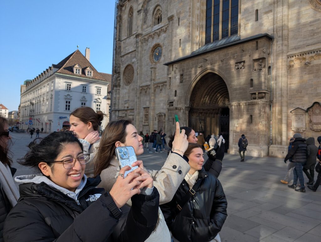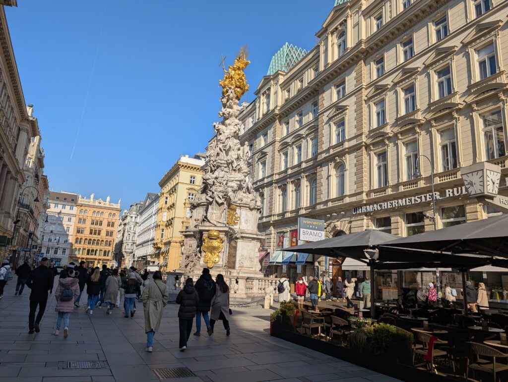 At 10:00 the next morning we all met up with our tour guide for the next two hours. We met outside St. Stephen’s church, which is a huge, gorgeous cathedral in the center of the city. Our tour guide was a wonderful man who walked us around to different locations and gave us some great Austrian history, show us stunning buildings and made the whole tour a fun adventure. Though the day was bright and sunny it was also only in the 30’s and very breezy taking the wind chill into the upper 20’s. The one thing that was so surprising to me was just how incredibly huge so many of the buildings were. Every story of the buildings was twice the height of a single story of today’s buildings.
