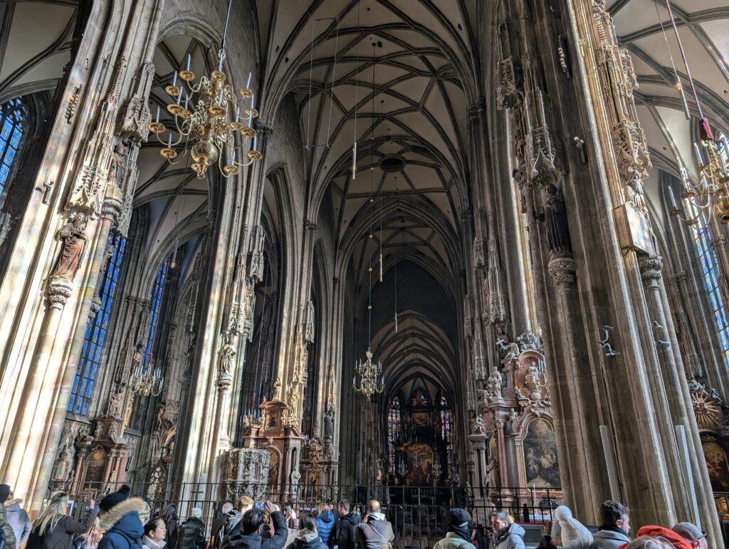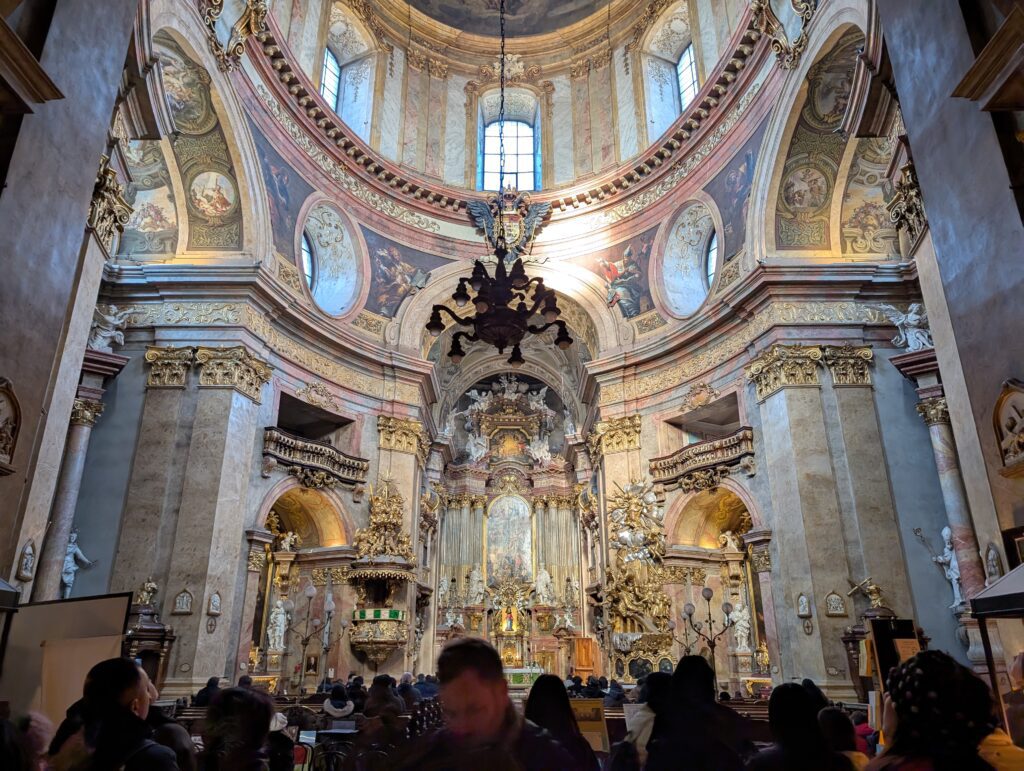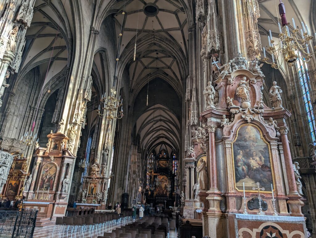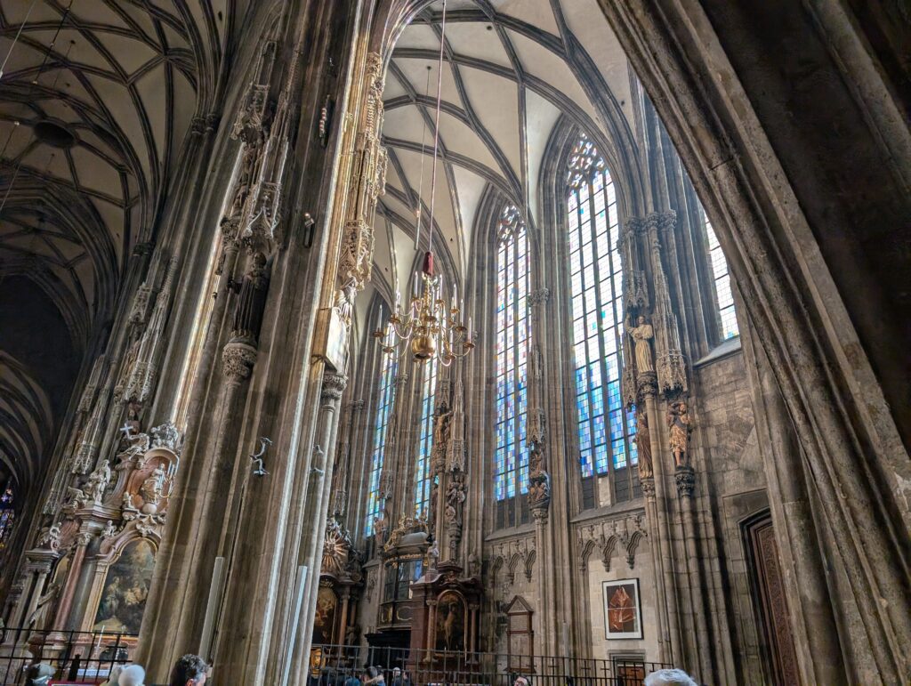 We did go into a couple of unbelievable cathedrals. First, we visited St. Stephen’s in the center of the city. The sheer size of the inside of some of these cathedrals is truly overwhelming. It is hard to believe the time period they were built in and that they were able to engineer and build such a magnificent structure. One feels so small inside. Yet each one is still only what man himself can build and the most we can do. All of these buildings reflect man’s capabilities and come so short of all that God creates in his universe. We also stopped at St. Peters church and heard someone singing with the organ and it was gorgeous.