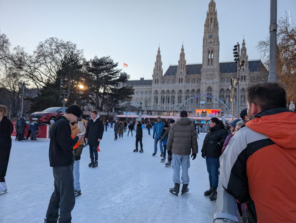 Becky really wanted a scarf to cut down on the strong wind and we were able to find a small shop that had a very nice, thick scarf that she really liked. We also saw a temporary ice-skating center Vienna sets up each winter outside city hall. Thought it would have been fun we decided not to join the fun.